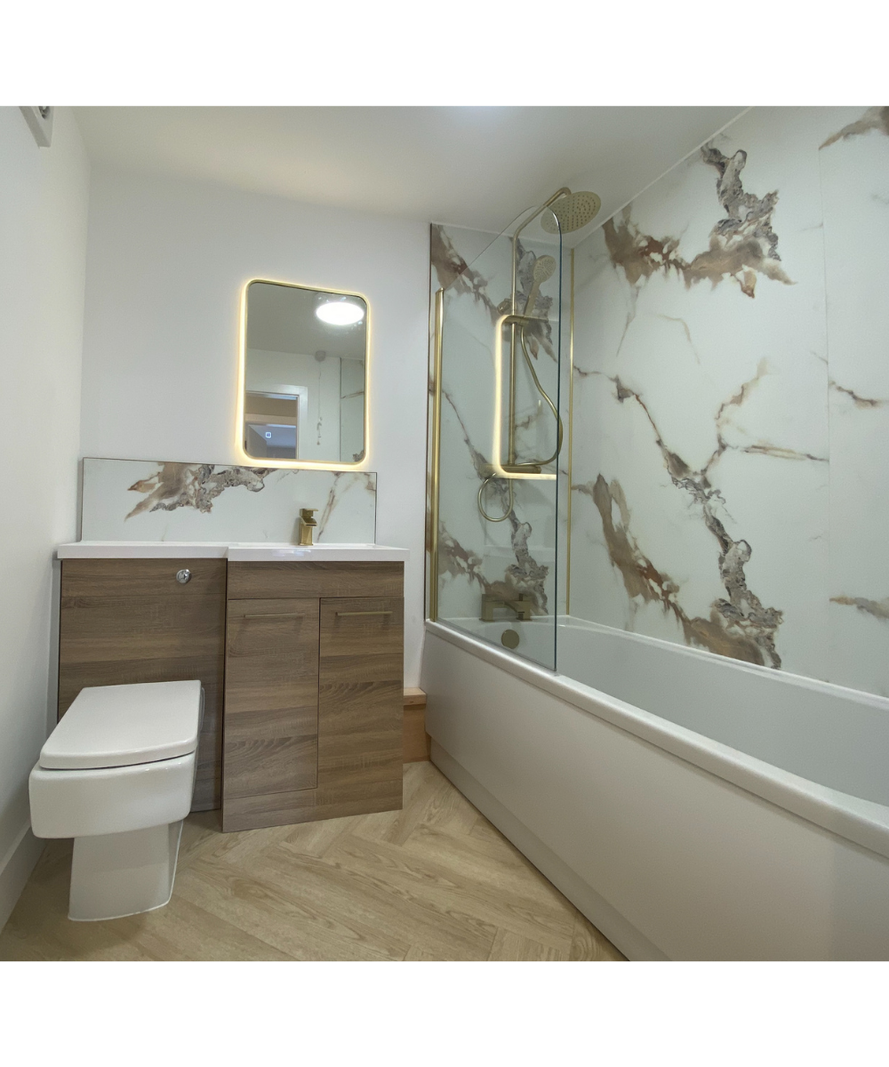 Product Used: 10mm Calacatta Marble Ultra Matt Shower Panel