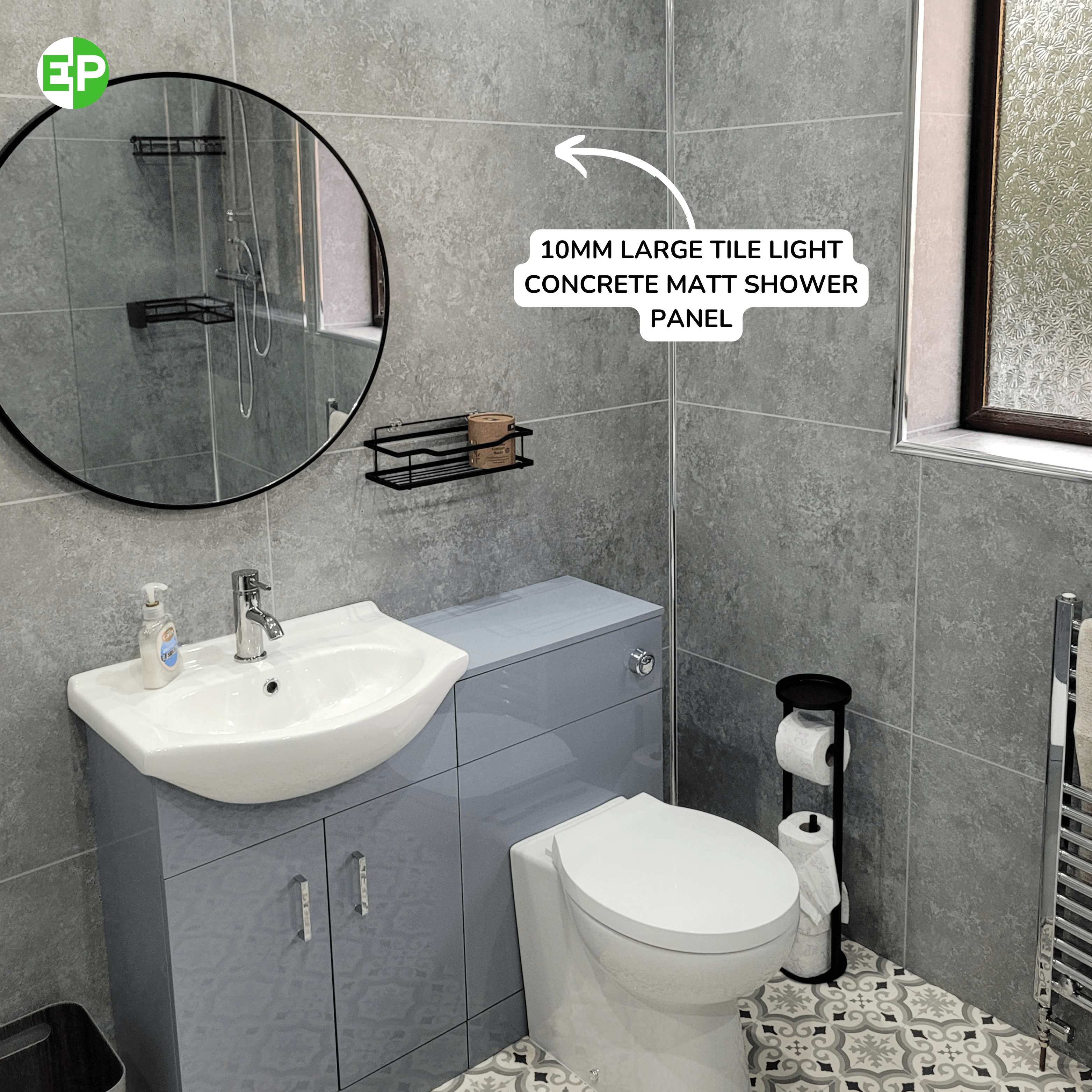 10mm Large Tile Light Concrete Matt Shower Panel 1M x 2.4M